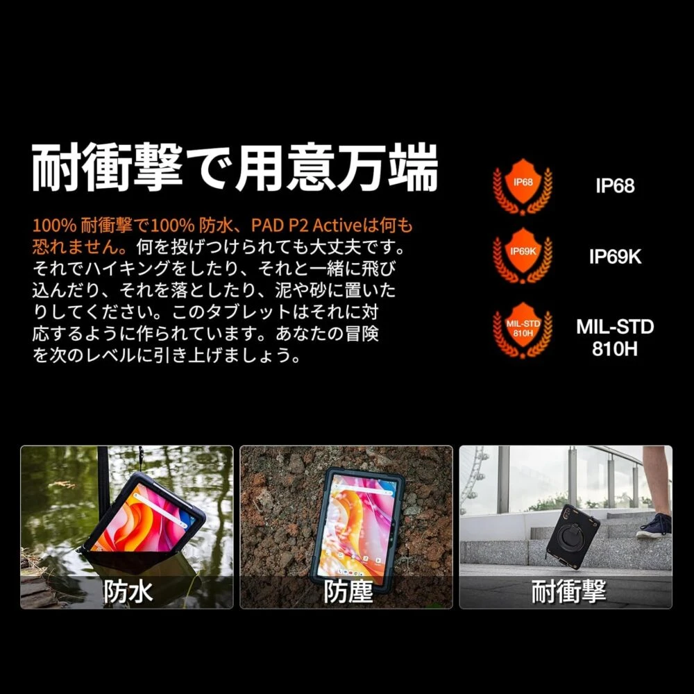 今回紹介する『AGM PAD P2 ACTIVE』は、Android14搭載の10.95インチタブレットです。