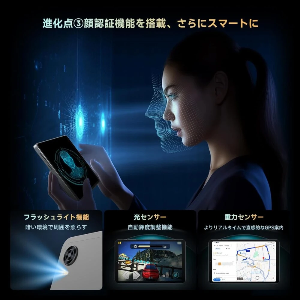 CPU(SoC)にはMediaTek G99 オクタコアプロセッサーを、RAMは8GBを採用。一般的なタブレット用途は問題なくスムーズにこなせるだけの性能を擁しています。RAMは最大16GBまでの拡張が可能で、よりスムーズなタブレット操作を楽しめるようになります。