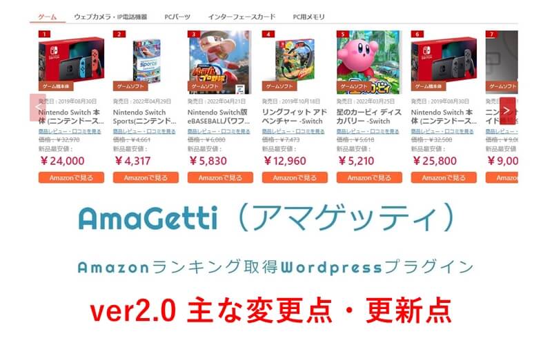 2022年9月9日(金)より、Amazonランキング自動取得プラグイン『アマゲッティ(AmaGetti)』に関して、ver2.0 の配信を開始しました。