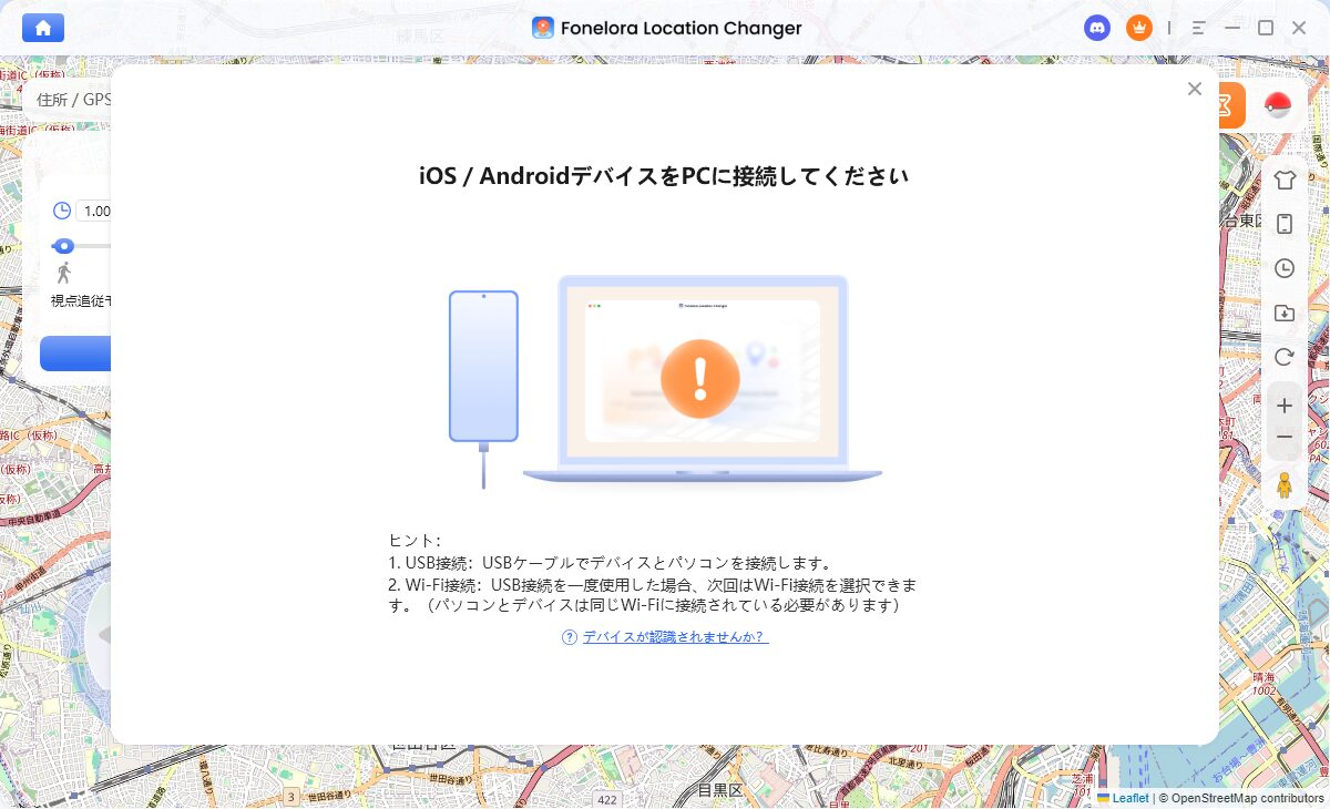 公式サイトからFonelora Location Changerをダウンロードし、PCまたはMacにインストールします。インストール完了後、ソフトを起動します。