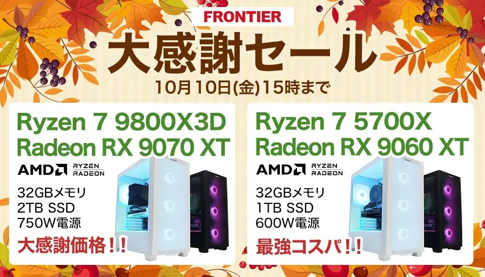 【2025年10月時点】において、大手ゲーミングPCオンラインショップである『FRONTIER(フロンティア)』で開催されている最新のセール情報についてまとめています。