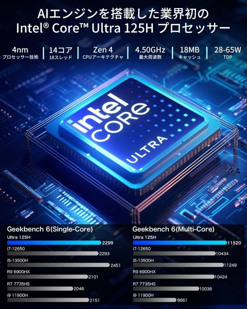 Core Ultra 5 125H搭載の高性能ミニPC