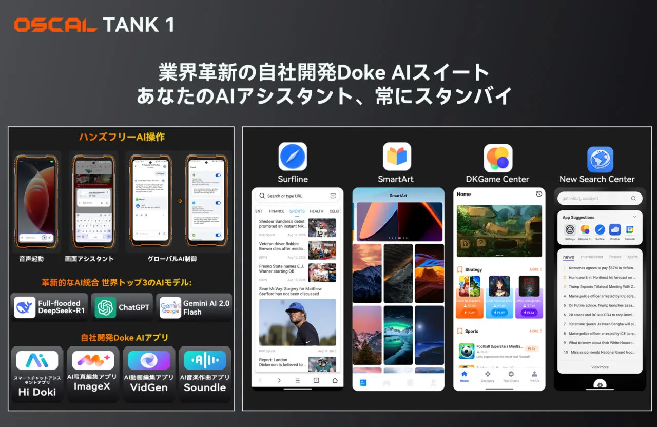 OSCALが新たに発表した『OSCAL TANK 1』は、同ブランドがこれまで培ってきたタフネス技術と最新のAIテクノロジーを融合した、デュアルスクリーン搭載5Gフラッグシップタフネススマートフォンです。