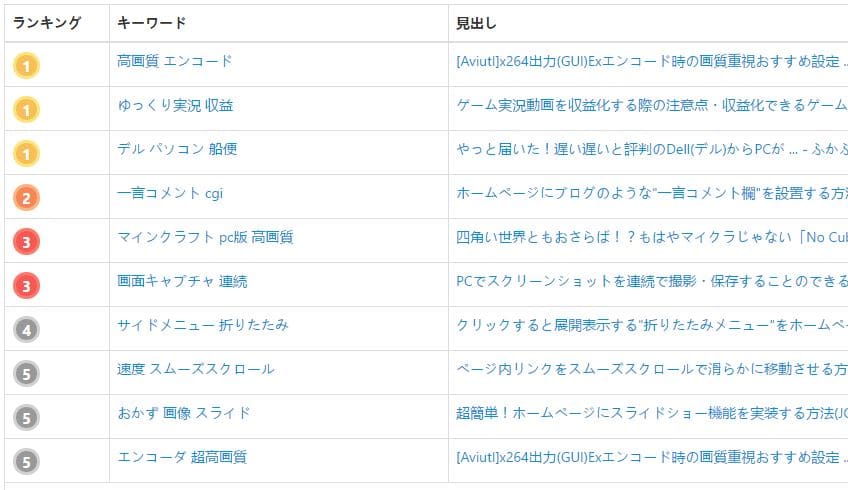 このように、自分のサイトで何のキーワードが検索上位に位置しているかが一目でわかります。SEO対策の参考にしてみてくださいね!