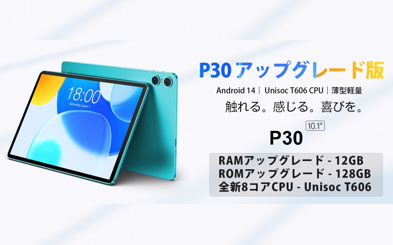 Unisoc T606 オクタコアプロセッサー搭載、最大12GB RAM + 128GBストレージを内蔵した、10.1インチAndroidタブレット『TECLAST P30 アップグレード版』(P30 T606)について、Amazon通常価格より7,000円OFFの割引が適用される期間限定セールが実施される。