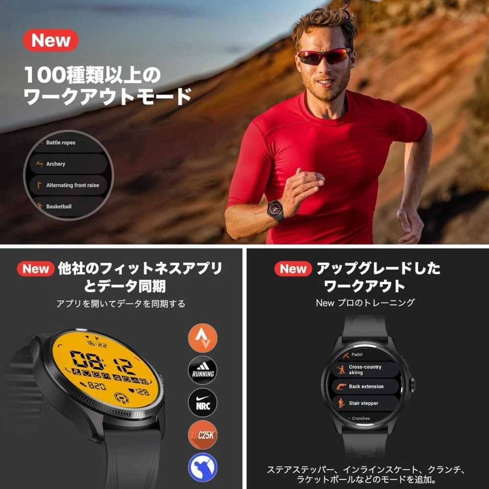 『TicWatch Pro 5 Enduro』は110種類を超えるワークアウト計測に対応しており、高精度なGPS測位を利用して、精密な運動強度を計測することが出来ます。