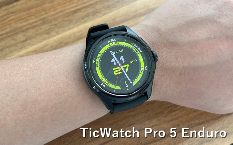 今回は『TicWatch Pro 5 Enduro』について、提携先より提供していただいたので、実際に使用した感想を基に良かった点・悪かった点をレビューしていきます!