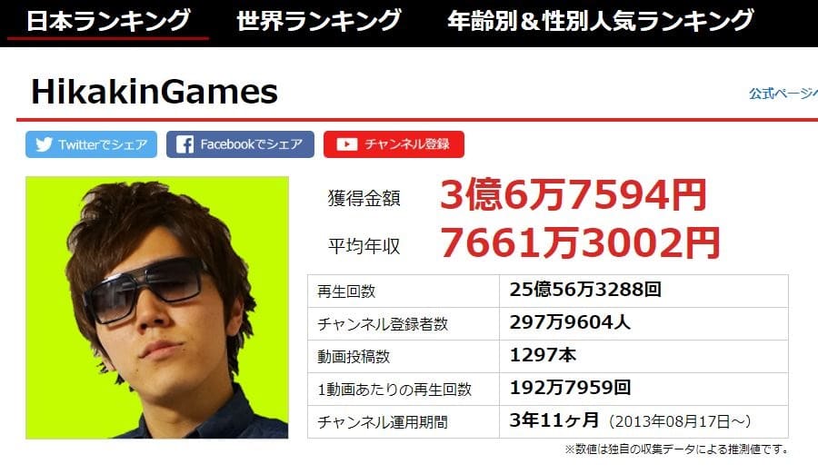 なので"大物"と呼ばれるユーチューバーさんのほとんどは、おそらくここで表示されている額以上の年収を得ていると言ってもいいでしょう。将来YouTuberで収入を得たいと思っている方は、是非参考にしてみてくださいね!